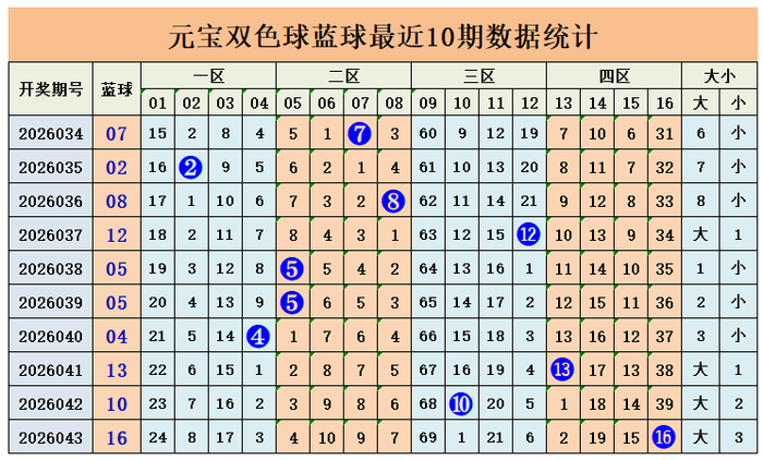上期蓝球奖号为四区奖号16